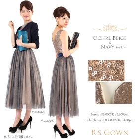 【MIYU着用】アンティークゴールド+ソフトな色♪ロマンチックなミモレ丈のパーティドレス